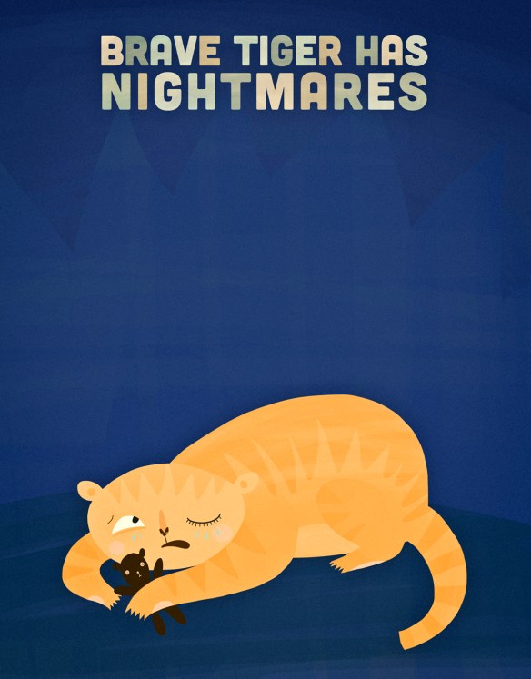 Your illustration is so incredibly cute! A tiger sleeping with one eye open and holding a little teddy bear! Sheer magic.
