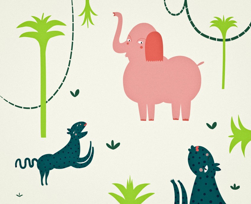 pink elephant hunted by blue leopards.