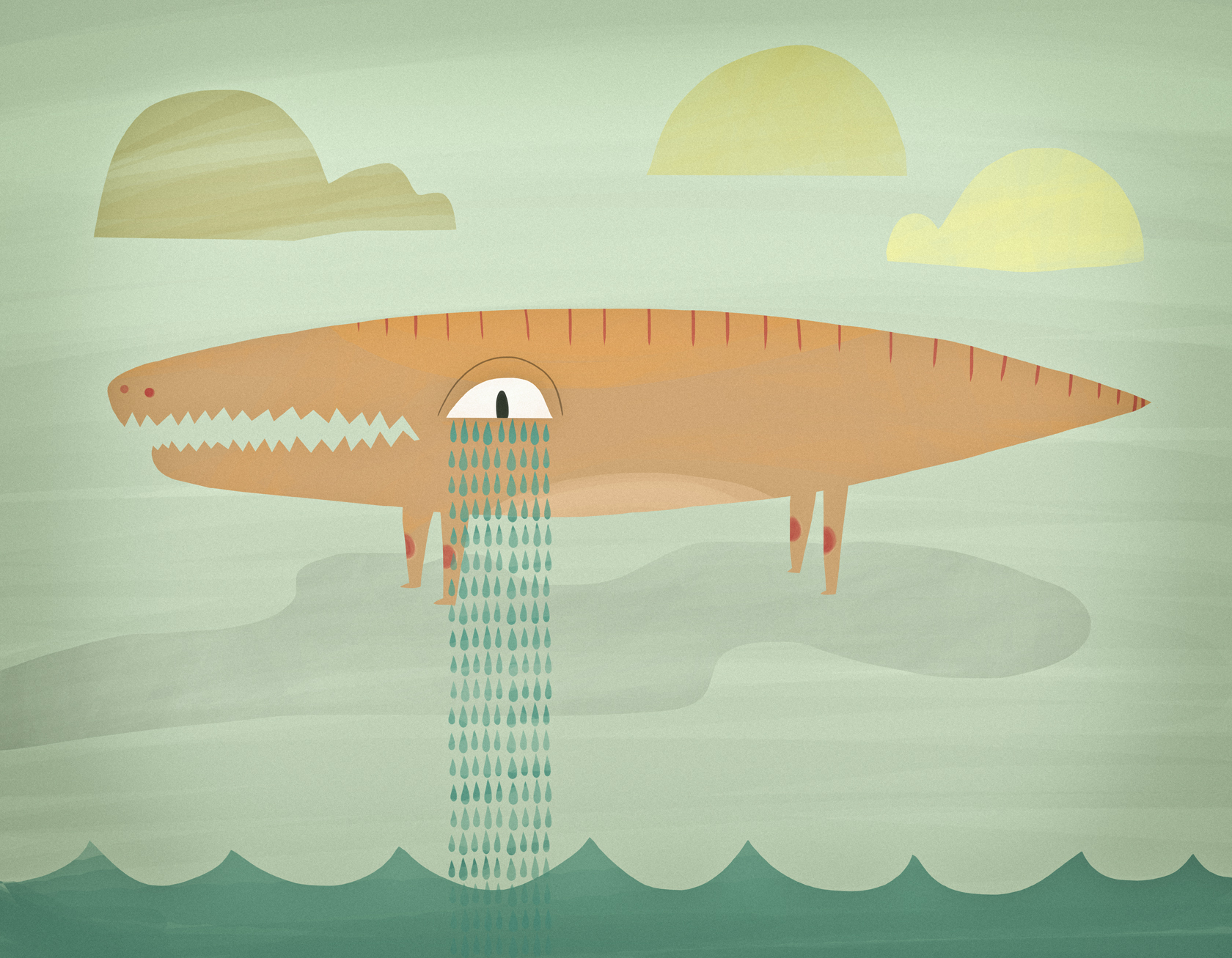 the alligator wandered his way into a lost state. his river was no where in sight and big crocodile tears started to fall from his alligator eyes. his sadness was the size of a new river where he lived for the rest of his life.