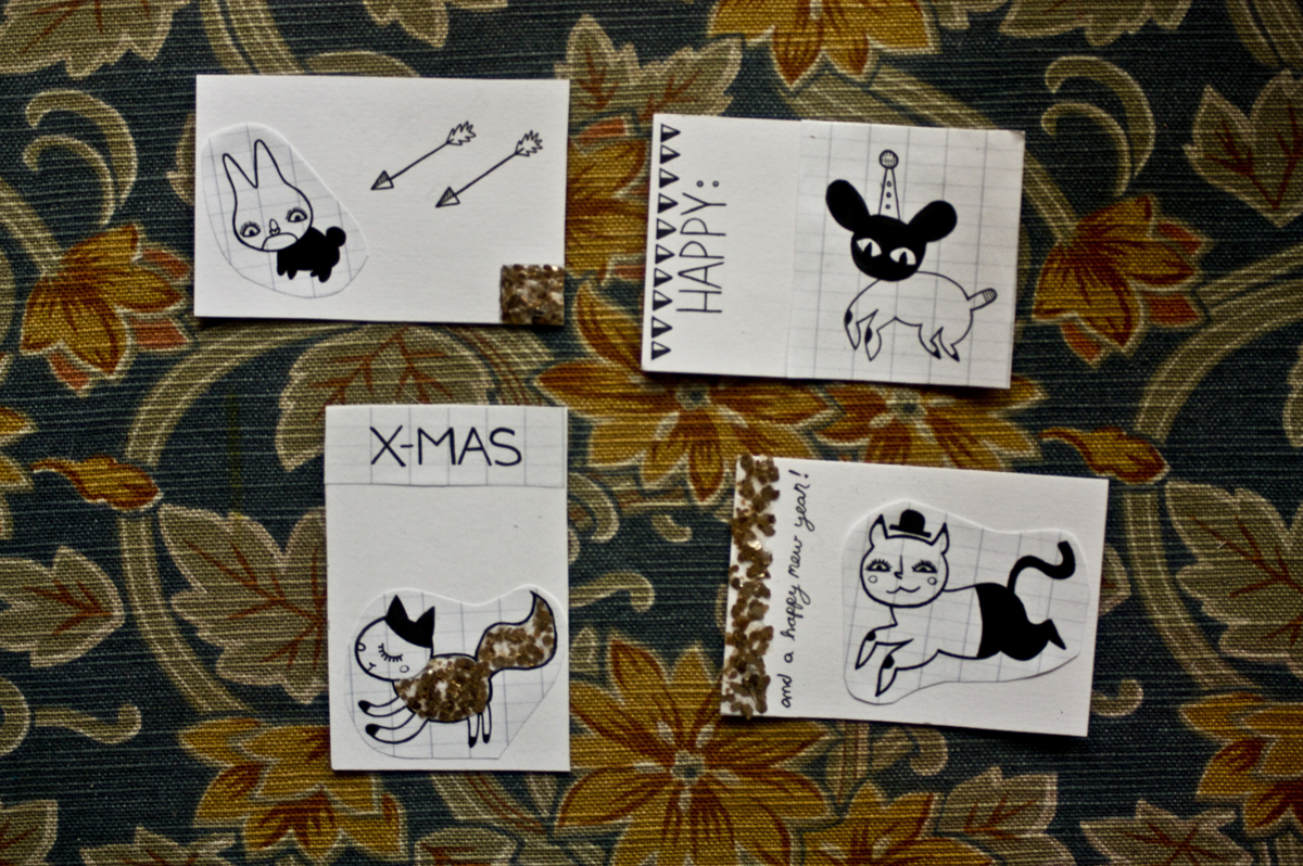 cards. Posted on December 2, 2011 by sarahgoodreau Reply i finished up a job today and while i was waiting on files to transfer i started doodling. then i decided to turn them into little cards for the holidays.