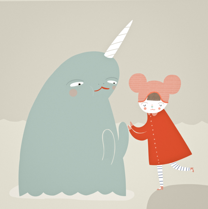 a girl and a narwhal.