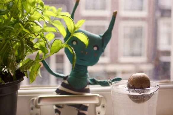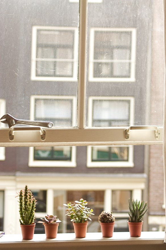 my parents gave us a apartment warming gift of little baby succulents. cacti being one of the few plants i don’t kill, i’m very excited. this now brings the window garden to 5 succulents, strawberry seedlings, an avocado seed and mint. but the mint is half dead. all gaurded by the garden keeper moonman.
