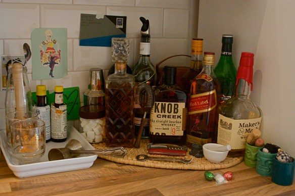 my parents also brought some bar paraphernalia that i either left in america or can’t get here. most notably multiple bourbons. having a well stocked bar is a very important thing.we made some mint juleps with the aforementioned dying mint. and of course. old fashioneds!!